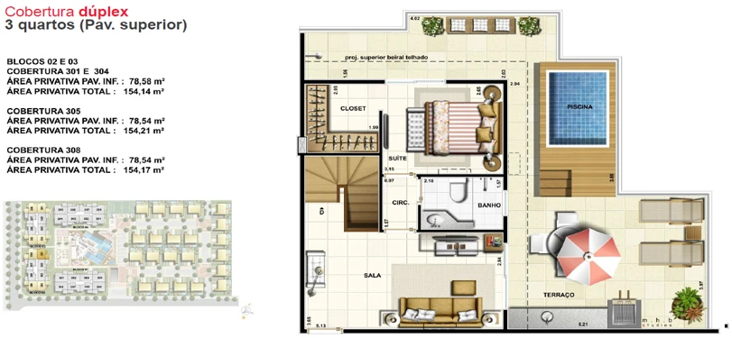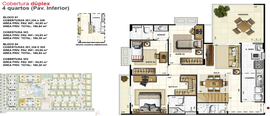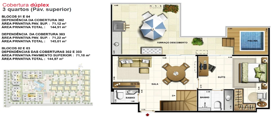 Coberturas duplex de 3 e 4 Quartos 144m² até 186m²
