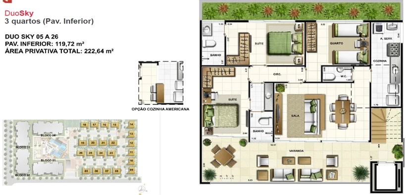 4 quartos dúplex com terraço, piscina e espaço gourmet. Terraço ao ar livre com privacidade e garagem privativa